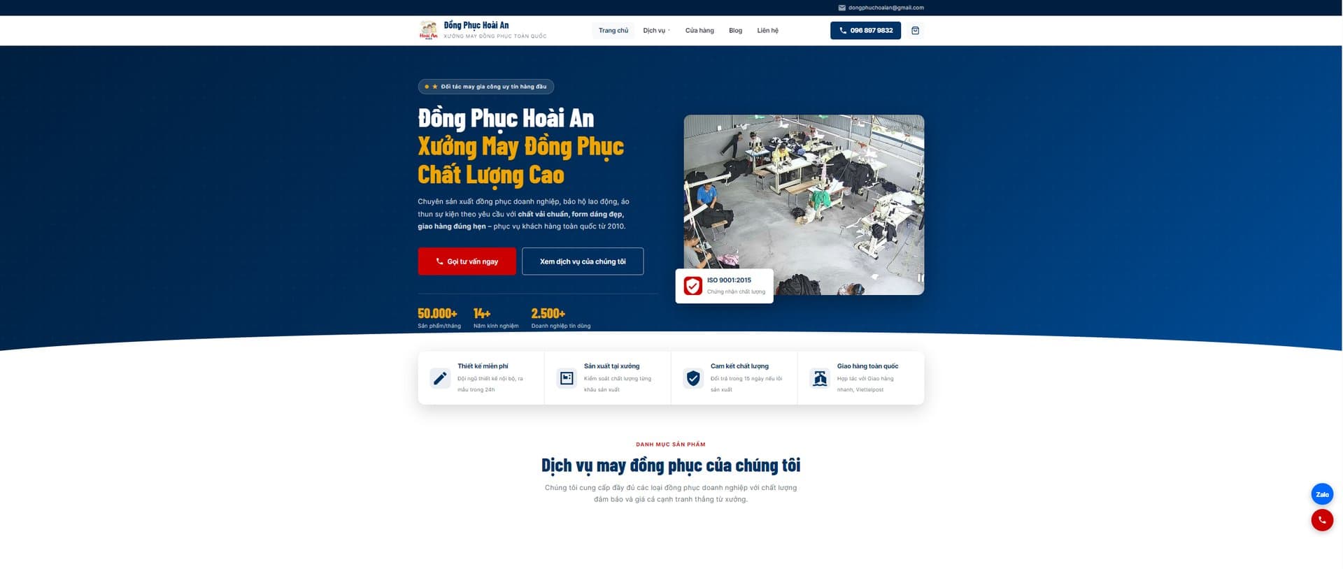 Với hơn 14 năm kinh nghiệm trong ngành may mặc và phục vụ hơn 2.500 doanh nghiệp, Đồng Phục Hoài An sở hữu năng lực sản xuất lên đến hàng chục nghìn sản phẩm mỗi tháng. Tuy nhiên, thương hiệu cần một nền tảng website chuyên nghiệp để thể hiện uy tín, chuẩn hóa hình ảnh và mở rộng tệp khách hàng trên toàn quốc.