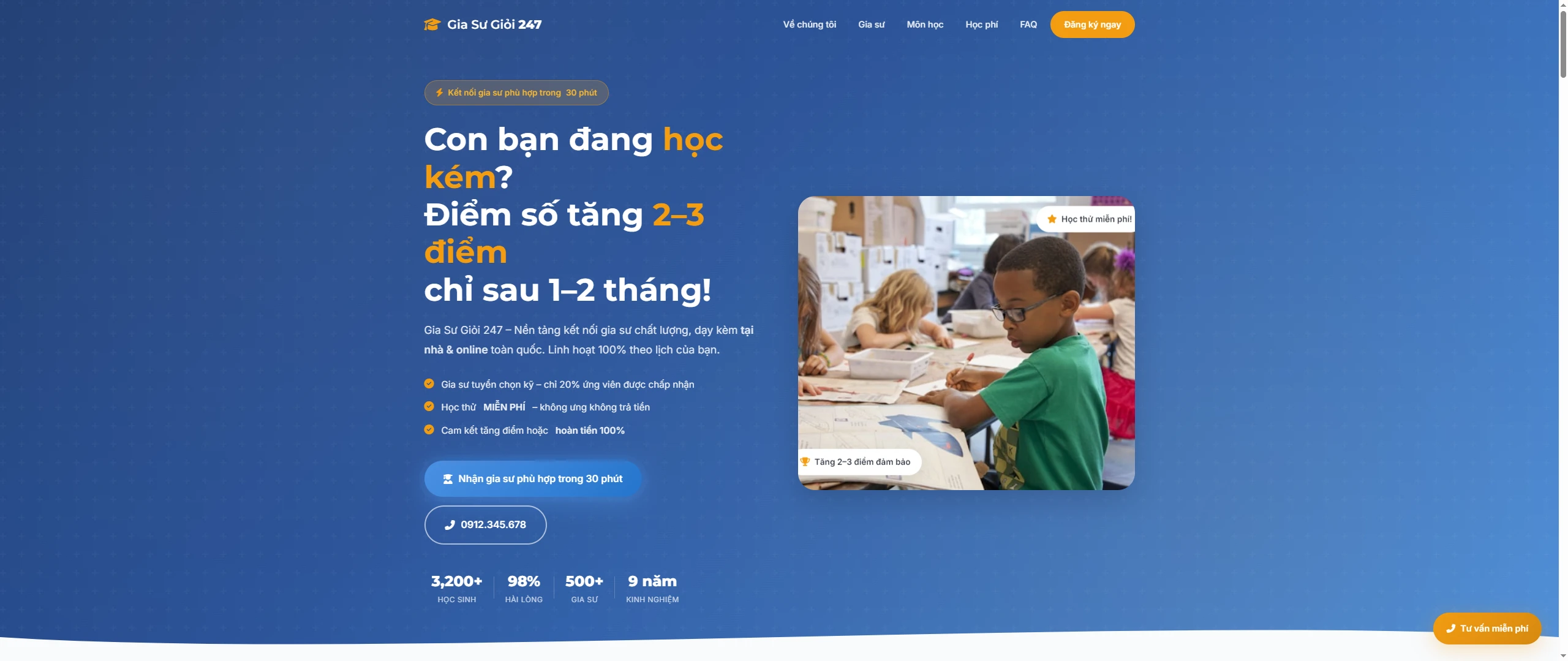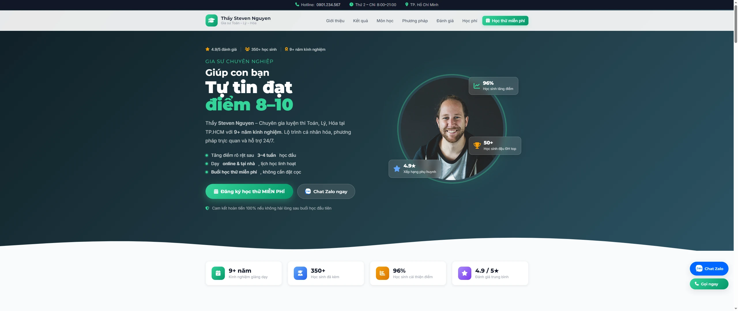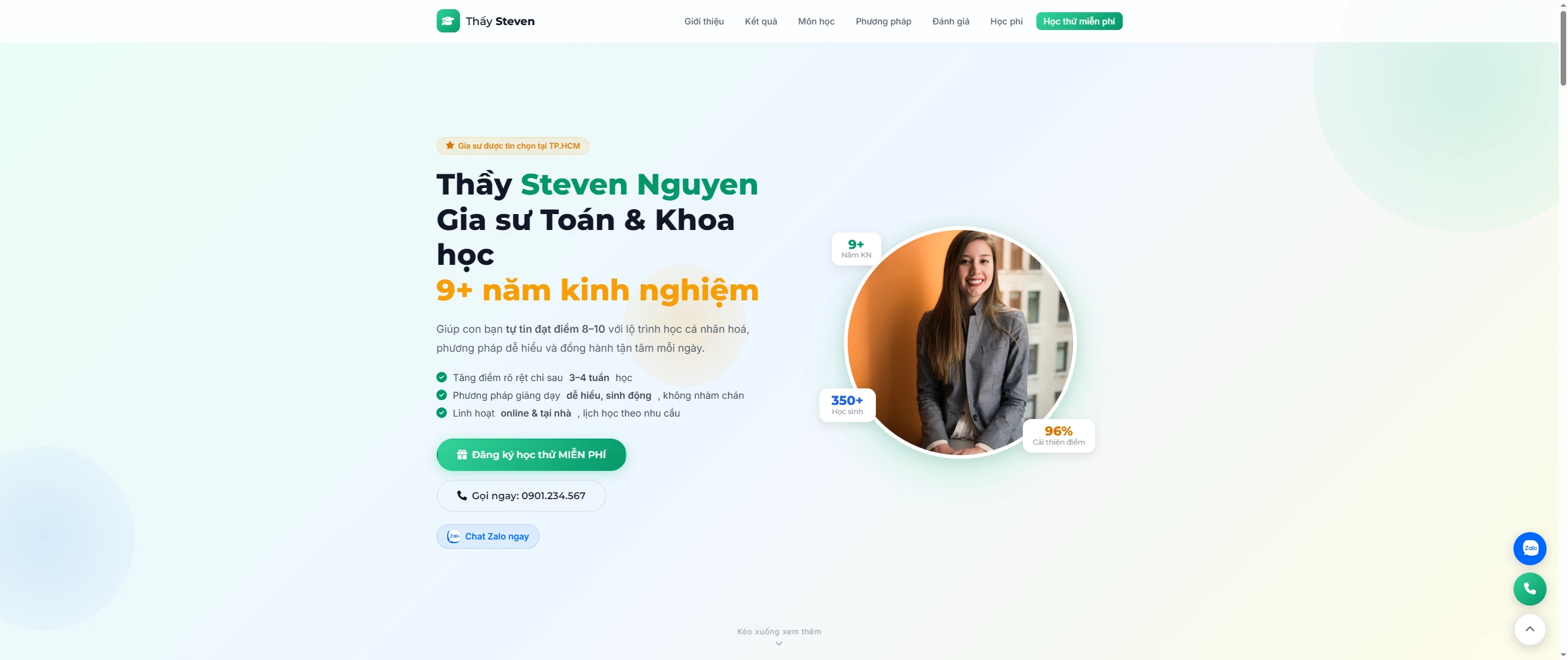 Landing page cho gia sư Toán Lý Hóa • Phong cách hiện đại